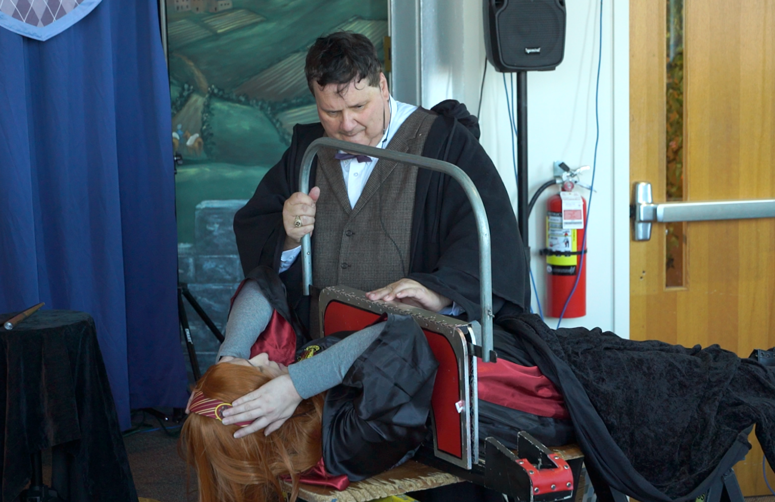 Bella controlling the Headmaster to cut Lily in Half